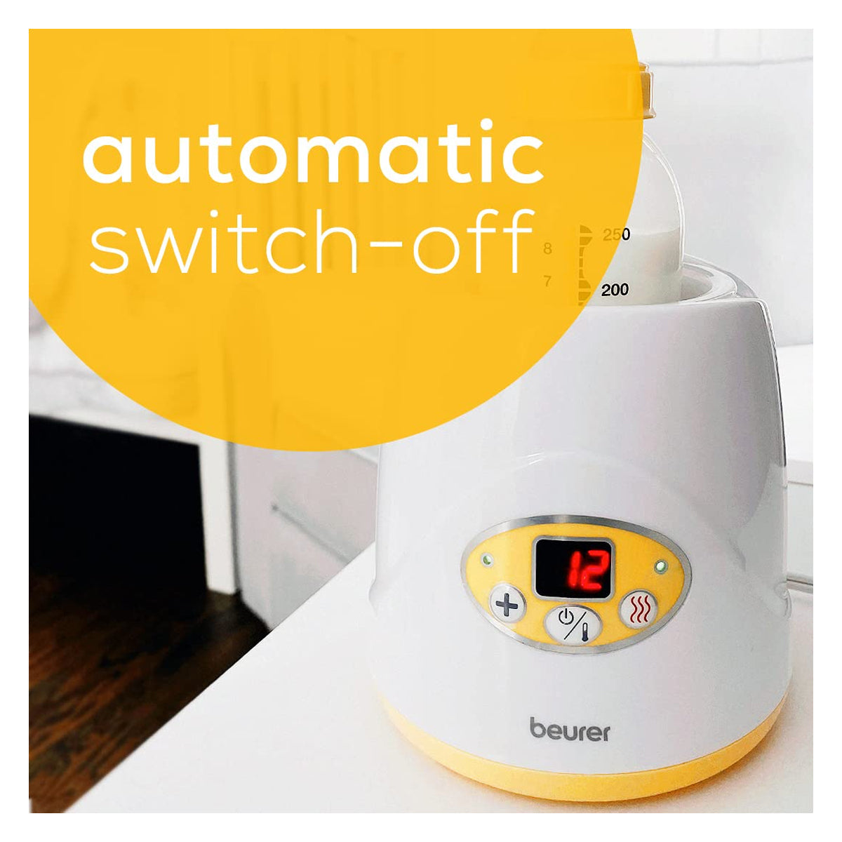 Beurer Bottle Warmer - BY 52 is ideal for any parent with an illuminated panel . Conveniently for night time with LED temperature displayed digits, optical signal & indicator lamp. It has a practical 3-step function. First, with the lifter inside the device, place any bottle or jar. Secondly, fill the container with water. Finally, choose a temperature setting by using the control panel. Suitable for all baby bottles and all commercially available jars. With an easy-to-carry size, the Baby Bottle and Food Warmer is ideal to take with you. Its compact size suits every kitchen counter, nursery, or bed stand perfectly. It has an integrated shut-off feature that will have your back,
