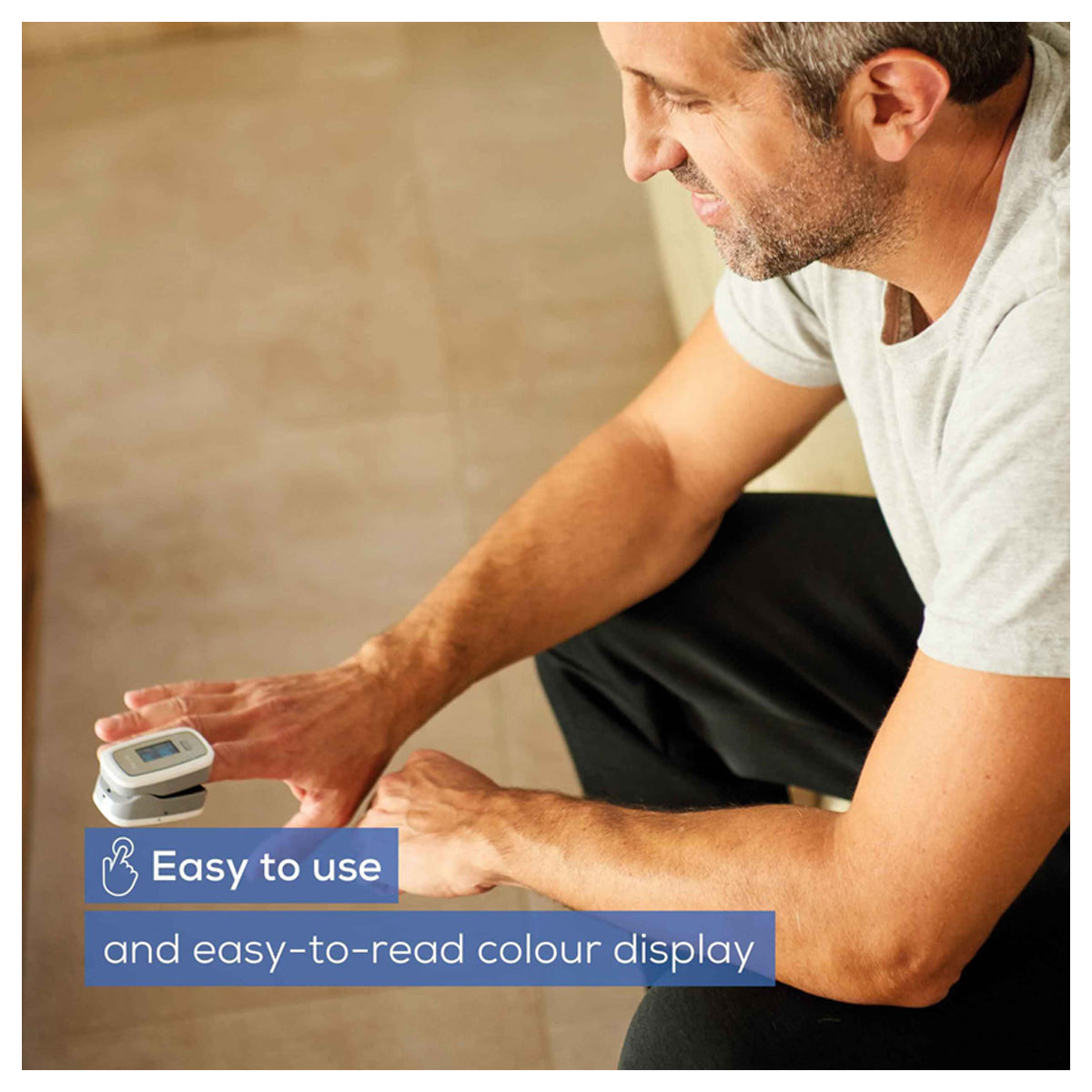 Beurer Pulse Oximeter - PO30 is designed to accurately measure oxygen saturation (SpO₂) and pulse rate, providing reliable monitoring for both health conditions and high-altitude sports. Compact and lightweight, it features a color display with four viewing perspectives, adjustable brightness, and a graphical pulse indicator for easy readability.