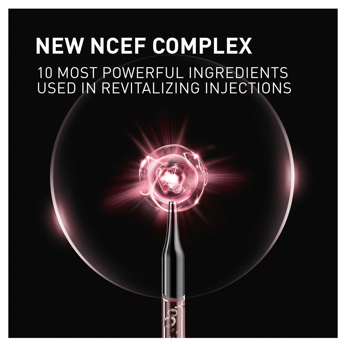 Formulated with NCEF® – a unique complex of 50 revitalizing ingredients, this high-performance anti-aging serum targets signs of fatigue, dullness, fine lines, and skin laxity.