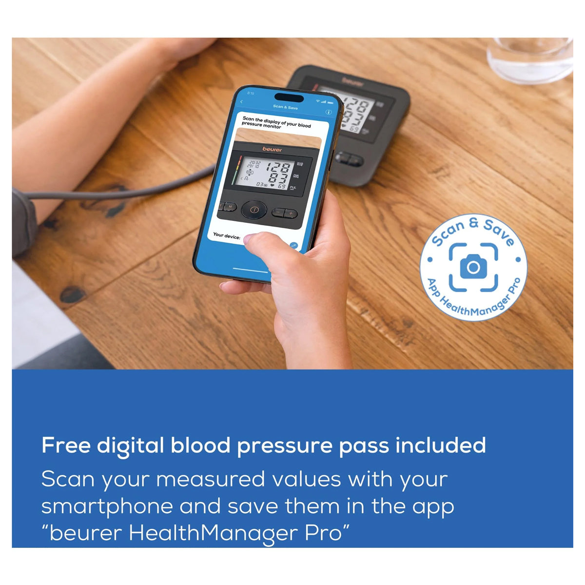 Scan & Save function: store results digitally via the free Beurer Health Manager Pro app