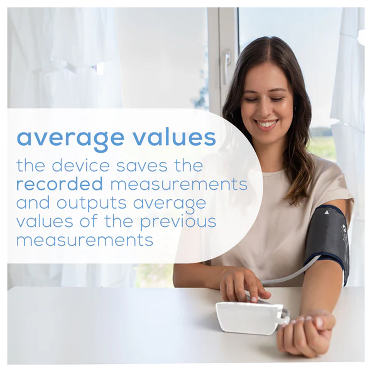 Beurer Upper Arm Blood Pressure - BM 27 is an ideal tool for tracking your blood pressure and pulse at home. Its large, clear display and WHO color-coded risk indicator makes it simple to read and understand your results. The arm blood pressure monitor alerts you if an irregular heartbeat is detected and shows an "OK" sign on the screen to confirm correct cuff positioning, ensuring accurate measurements every time.