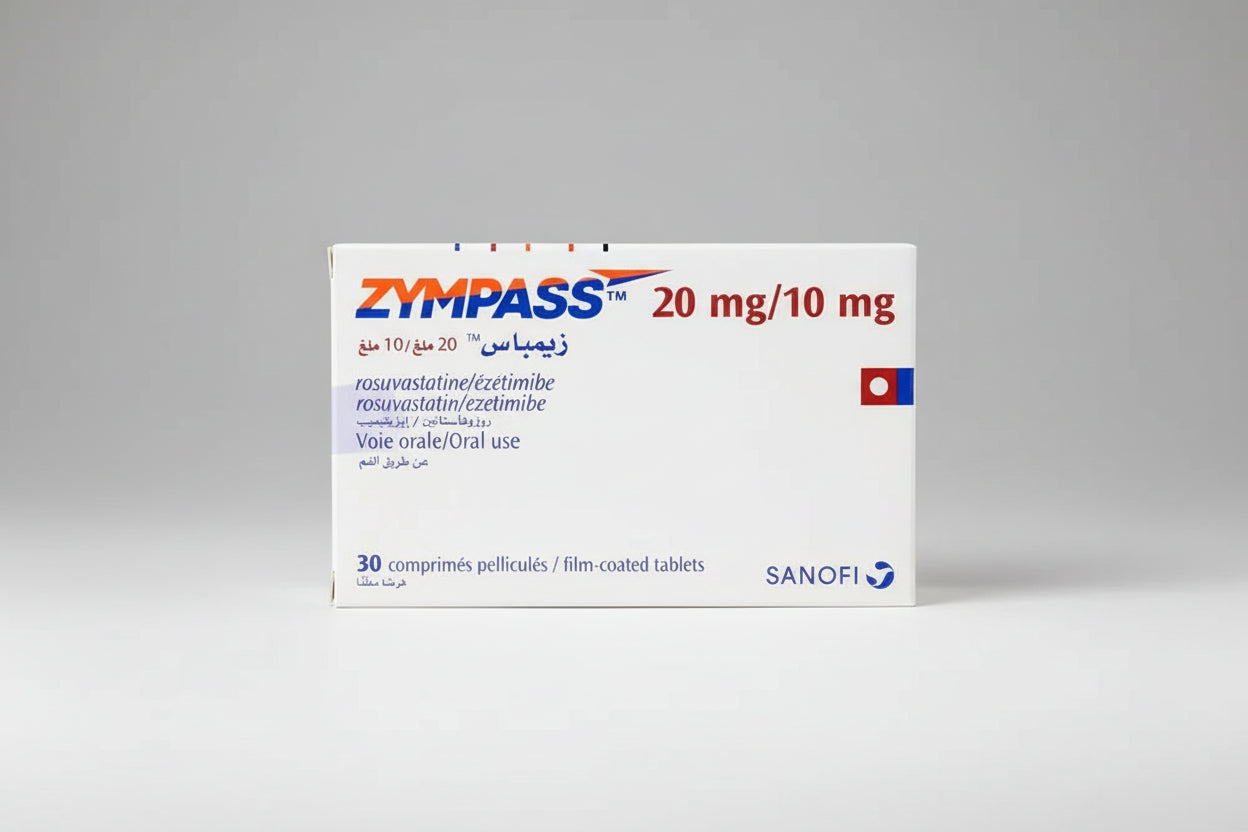 ZYMPASS® 20 mg / 10 mg ist ein verschreibungspflichtiges Arzneimittel , das häufig unter ärztlicher Aufsicht zur Behandlung erhöhter Cholesterin- und Lipidwerte eingesetzt wird . Es kombiniert Rosuvastatin (20 mg) und Ezetimib (10 mg) – zwei sich ergänzende Wirkstoffe, die über unterschiedliche Wege die Cholesterinproduktion in der Leber reduzieren und die Cholesterinaufnahme im Darm einschränken.