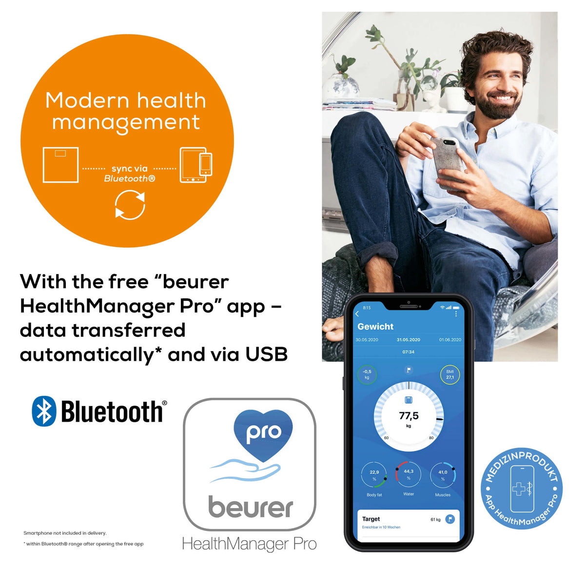 - Y compris gratuit "beurer HealthManager Pro" application : Suivez vos mensurations et vos données corporelles à tout moment